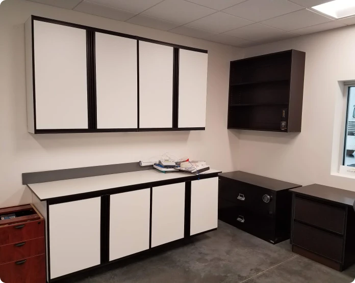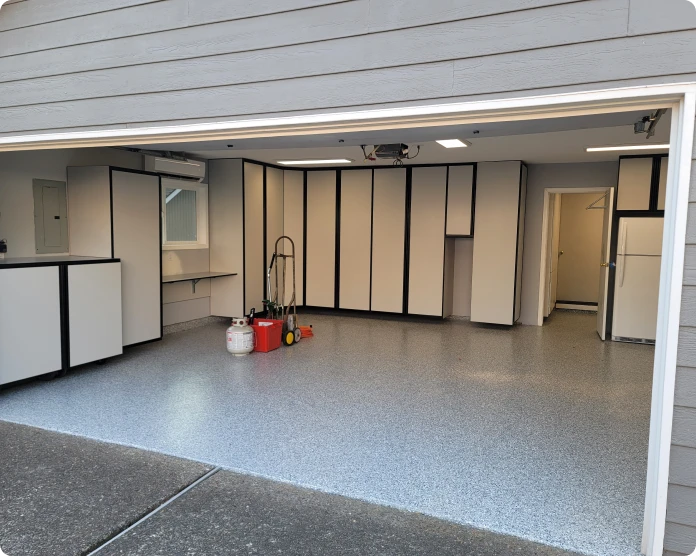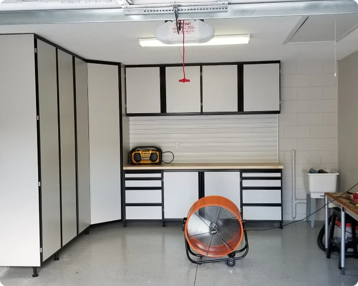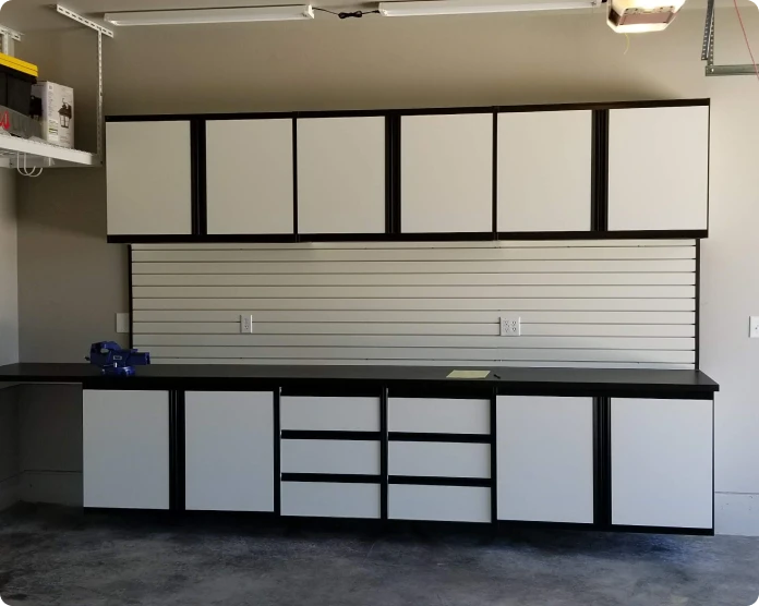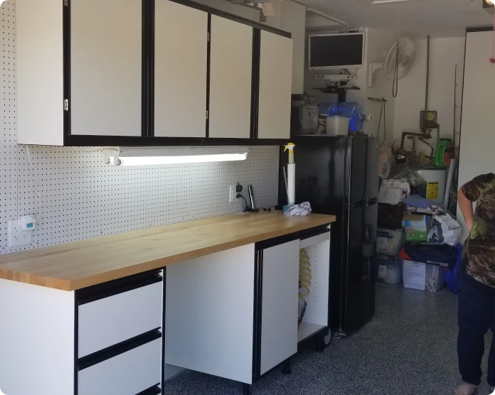 Make the most of your garage’s vertical space with our Longwood custom garage cabinets, perfect for bulky items like ladders and garden tools. Built from high-quality materials, these durable cabinets keep your garage organized and efficient.